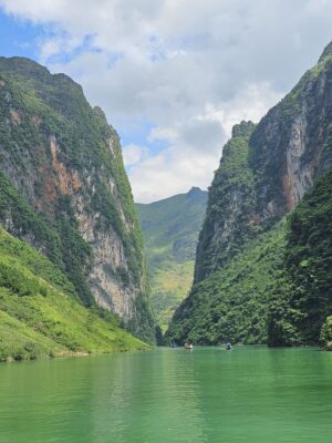 Visitors can take a boat or kayak trip on the Nho Que River to fully admire the grandeur of Tu San Canyon from below. The calm, jade-colored water contrasts beautifully with the vertical limestone cliffs. Adventurous travelers can also enjoy trekking or motorbiking along Ma Pi Leng Pass – one of Vietnam’s most spectacular mountain roads.