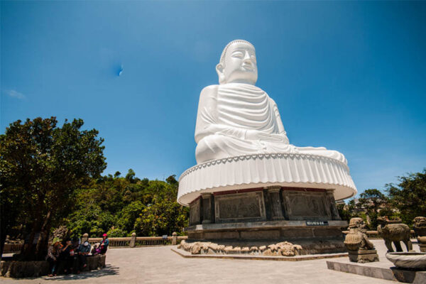 The Sakyamuni Buddha statue is located on the summit of Nui Chua Mountain, within the...