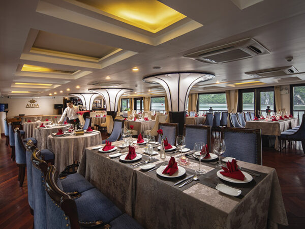 DAY 1: HA NOI – HA LONG – GROUP TOUR (Lunch/Dinner) 8:00-8:30 Cruise’s shuttle bus pick you up at hotel and transfer to Halong Bay. 12:30 Customers arrive at Alisa’s private marina – enjoy drinks and listen to the captain’s introduction about the program, safety instructions while on the cruise. 13:00 Enjoy lunch at a luxury restaurant aboard Alisa cruise with dishes bearing the essence of Vietnamese and world cuisine (during the group lunch, the cruise will take you to start your journey. Exploring the sights of Ha Long, which has been recognized by UNESCO twice as a world natural heritage, and most recently, the new 7 natural wonders of the world voted by tourists from all over the world. After finishing the lunch, the delegation will check in and rest. 15:30 Visit Titov Island 16:00 – 17:00 You start going to Luon Cave. Coming to this area, you can freely go kayaking or you can choose to sit on a bamboo boat and explore Ha Long in your own way. 17:30 Back to the yacht and free to rest (watch the sunset fall over Halong Bay – this is an ideal time for travelers who have a hobby of taking pictures) 18.00 Enjoy the Happy Hour Time at a luxury bar Alisa and cooking class 19:30 Group dinner at the restaurant with dishes made from local products. After dinner, the group is free to rest, relax and enjoy good movies or participate in games such as playing cards, chess, karaoke, squid fishing and overnight on Alisa Cruise. DAY 2: HALONG BAY – HA NOI (Meal: Breakfast & Lunch) 06:00 Customers can enjoy free gym on the 3rd floor, or watch the early sunrise on the deck. 06:45 Have a light breakfast at the yacht’s restaurant, including tea, coffee, fresh milk, filtered water, cakes, fruits, cereals… 07:35 You start to visit Surprise Cave 09:45 Check out procedures at the same time the yacht departs for the pier, the group has lunch at the restaurant (you have a meal while watching the famous attractions of Halong such as: Stone Island – Dinh) Lu Huong and Hon Ga Choi….) 10:00 – 10:30 completing the payment procedures for incurred expenses 11:00 Arrive to Tuan Chau Harbour 11:30 Shuttle bus transfers you to Ha Noi city, tour ends! PRICE FOR PER CABIN: 263 (USD) (Price not included bank transfer fees – From 01/05/2024 to 30/09/2024) |