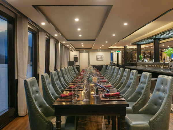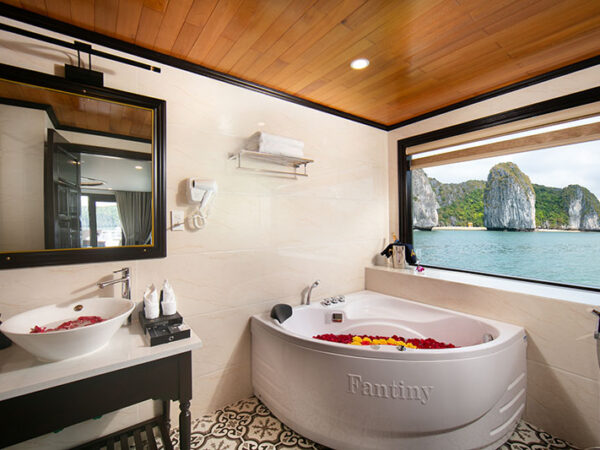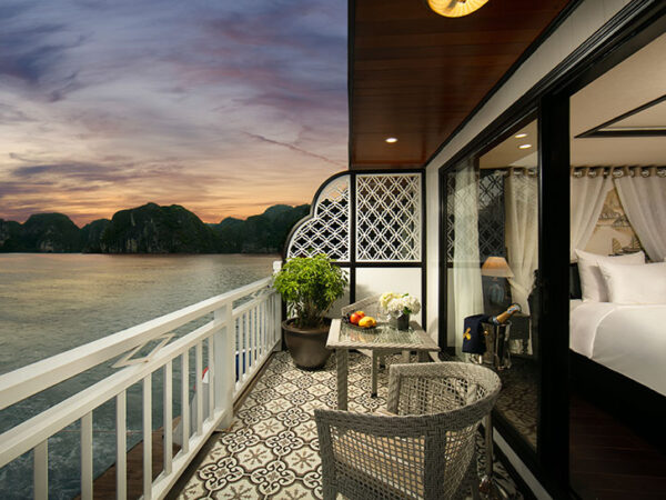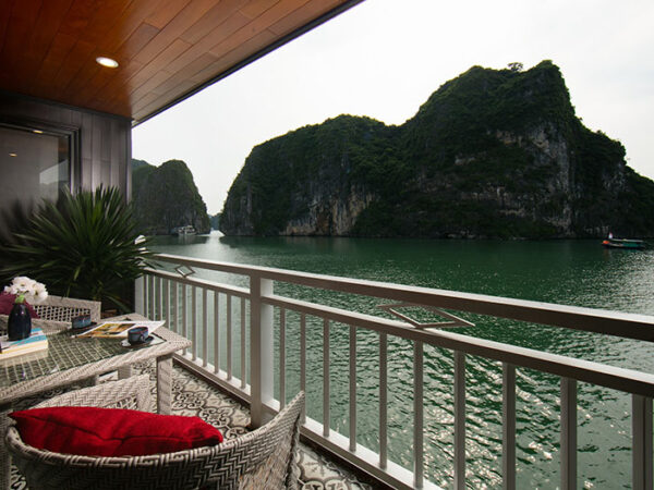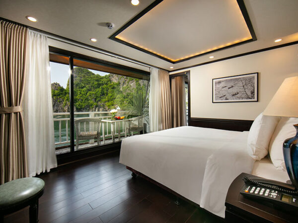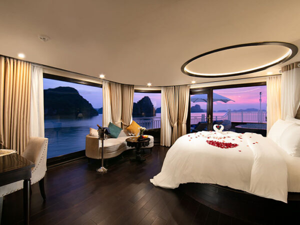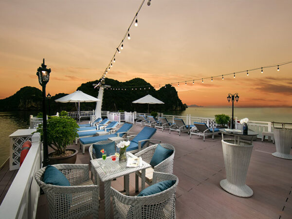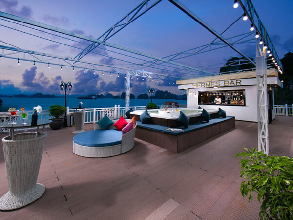 DAY 1: HANOI – HALONG BAY 8: 30 – 8: 45 Pick up at your hotels in Hanoi Old Quarter. Then transfer to Tuan Chau wharf on the new highway. Note: If guests do not stay at the hotel, our car will pick up at Hanoi Opera House – the final pickup point 10: 30 – 11: 00 Stopover for refreshment at Pearl store, pearl breeding place about 20 minutes. 11: 30 – 12: 00 Arrive at Tuan Chau harbour. 12: 30 – 13: 00 Transfer to Hermes Cruises. Check in your cabin. 13: 30 Enjoy a nice buffet lunch at our restaurant while the cruise goes ahead to Halong Bay. 15: 00 – 16: 45 Continue to explore Halong by visiting Luon cave. Here, you can participate in kayaking, a must-try sport activity in Halong. After that, visit Titov Island. Here, you will have time to climb up to the peak of Titov Island, admire the beautiful panorama view of Halong Bay or swim, take pictures, play on the sea. 18: 00 Enjoy Sun Set party with fruits and snacks on Hermes Sky Bar. Option: Happy Hour (Buy 2 get 1 free). Massage service is available. 18: 30 Join cooking demonstration: How to make Vietnamese spring rolls – traditional Vietnamese food. 19: 30 Enjoy European set-menu dinner on the restaurant on-board. 21: 00 Join the Squid Fishing activity. Free time on the boat. DAY 2: HALONG BAY – HANOI 6: 30 Practice Tai Chi class. Tea and coffee are served. 6: 45 – 7: 30 Light breakfast is served. 7: 30 Visit Sung Sot cave. 09: 30 Check – out time on the board. 09: 45 – 10: 30 Enjoy buffet brunch while the cruise transfer to the Tuan Chau Wharf 10: 45 – 11: 00 Disembark to Tuan Chau Wharf. 12: 00 – 15: 00 Return to Ha Noi. End of the trip PRICE FOR PER CABIN: 323 (USD) (From 01/01-30/04 and 01/10-31/12) |