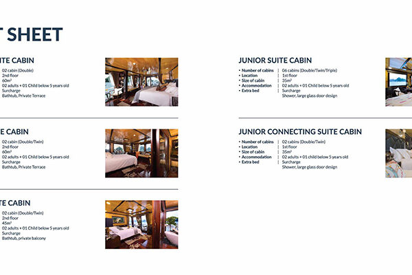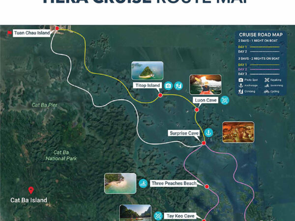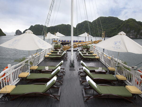 Day 1: Hanoi – Ha Long Bay – Luon Cave – Titop Island 07:45-08:30: Pickup service from your hotel in Hanoi’s Old Quarter and transfer to Ha Long Bay (for guests who booked Limousine or shuttle service). 11:30-12:00: Upon arrival at Tuan Chau Marina, Dock No. 12, the crew will warmly welcome you in the waiting area and complete your check-in procedure. 12:00: Board Hera Grand Luxury Cruise where the crew will greet you with a welcome drink and cold towel before you check into your cabin. The cruise departs from Tuan Chau Marina, taking you on a journey to discover the beauty of Ha Long Bay. Along the way, you can admire some of the most scenic spots in Ha Long and marvel at the majesty of the bay with thousands of limestone islands, heading towards Sung Sot Cave and Titop Island. Enjoy a luxurious lunch at the onboard restaurant while the cruise makes its way towards Luon Cave and Titop Island. 14:30: Return to your room and prepare for the excursion to explore Sung Sot Cave, one of the largest and most beautiful caves in Ha Long Bay. The cave features some unique rock formations that cannot be found anywhere else. The path to the cave entrance is under a canopy of trees. Walking up steep stone steps, you may feel like climbing into the sky, experiencing the thrill of stepping onto the heavens. 16:00: A small boat will take you to Titop Island. Here, you can climb to the top of the island for a panoramic view of Ha Long Bay or enjoy swimming in the clear blue waters. 17:30-18:00: Back onboard, join the sunset party and a cooking class as the cruise heads back towards the mainland. You can relax and enjoy a cup of traditional Vietnamese tea or coffee on the sun deck, surrounded by stunning scenery and a breathtaking sunset. Ha Long Bay is tranquil during the day, but as the sun sets, the bay becomes even more serene and peaceful. Our chef will guide you in making traditional Vietnamese “Banh Troi” (floating rice balls), and then you can enjoy the treats you made. 17:30-18:30: Happy Hour – BUY 2 DRINKS, GET 1 FREE. 19:30: Dinner will be served outdoors (weather permitting) or in the restaurant. 21:30: After dinner, enjoy the peaceful scenery of Ha Long Bay at night on the sundeck. You may also participate in evening activities such as massage services (available for a fee), complimentary herbal foot bath in your room, traditional fashion show “Heritage Steps,” enjoy drinks at the Sky Bar (available for a fee), admire the serene beauty of Ha Long Bay at night, or join the squid fishing program on a small boat.The cruise will anchor for an overnight stay Day 2: Sung Sot Cave – Ha Long Bay 06:15: Start the day with a Tai Chi class on the sundeck. 06:30-07:00: Enjoy a light breakfast with coffee, tea, pastries, fruits, Vietnamese pho, and an egg station. 07:30: Hera Cruise will take you to Luon Cave, where you can participate in kayaking or take a bamboo boat around the thousand-year-old limestone formations. 08:30-09:30: Return to the cruise. You can relax in your room, enjoy the herbal foot bath prepared by our crew, sunbathe on the sundeck, or take photos of Ha Long Bay. 09:30: Check-out time. Please place your luggage outside your cabin and leave your key at the reception desk. Our staff will transfer your luggage to the waiting area. 10:00: Enjoy an early buffet lunch at the restaurant on the 2nd floor and settle any additional bills if needed. 11:00: Arrive back at Tuan Chau Marina. For guests using the shuttle bus, enjoy a cycling tour to explore Tuan Chau Island after check-out. The trip ends. Thank you for choosing Hera Grand Luxury Cruise. We look forward to welcoming you again on our future journeys. PRICE FOR PER CABIN (215 USD) ( from 01/01/2024 to 31/12/2024) |