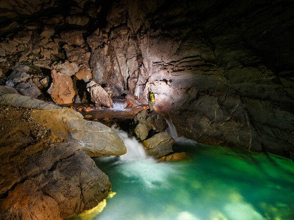 - 3 km caving in river caves (cold water, 17 degrees Celsius, waist deep)