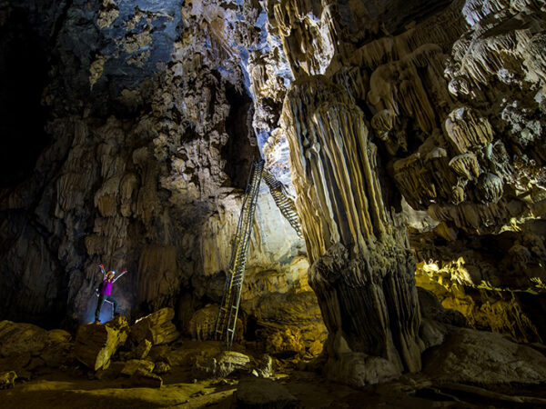 After crossing the river you’ll reach the impressive Hang Chuot (Rat Cave) to explore its massive formations for 280 m. Then climb over the mountain and trek through Hung Ton Valley to reach Hung Ton Cave. Explore this wild cave by descending a 15 m ladder with a safety rope before swimming 50 m through the cave and following an underground river to reach To Mo Valley, where a delicious lunch will be awaiting you.