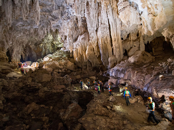 The second day starts with a hearty breakfast, and more cave exploration. Starting with a brief swim across the river into the heart of Tu Lan Cave System, you will break to enjoy the blue lagoon entrance before making your way 180 m downstream through Tu Lan Cave entrance. Make your way up to explore the dry part with some climbing and squeezing, at which point you will reach the dry exit and trek a short way through the valley into Kim Cave dry entrance. Stay for a while to watch out for a natural window in Kim Cave and you’ll then be off on a swim (450 m) and trek (500 m) through Hang Kim to To Mo Valley. A picnic lunch will be served next to a stunning waterfall by Hung Ton Cave mouth. Then, you will try to follow a dry path before swimming out through Hung Ton wet cave. Following this is the exploration of a dry passage, and then a trek down into Hung Ton Valley (800 m). Arrival in Tan Hoa is followed by a chance to take in the scenery with a cold drink in hand. Showers are available for those who would like to clean up and change, then back to Phong Nha is at around 4 pm and arrives at Phong Nha by 5:30 pm (Note: 6:00 – 6:30 pm from November to March).