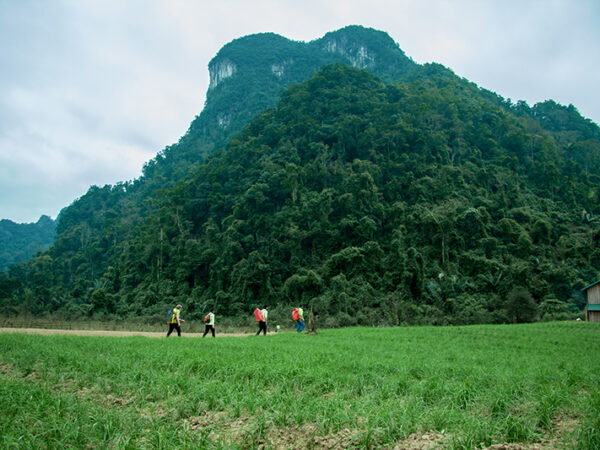 You’ll be picked up at your hotel in Phong Nha between 7:30 am and 8:00 am, before venturing off to the village of Tan Hoa, located 70 km away. After a safety briefing and gear check, you need to sign our Release Form before it’s off and away for a full day of trekking. The trek begins with a 2.5 km march across fields of peanut crops, giant water buffaloes, towering corn stalks, and down to the Rao Nan River. The adventure accelerates with a 30 m climb up a rocky hill to a small jungle opening where you can catch your breath before a 100 m descent in elevation down to Hung Ton Valley.