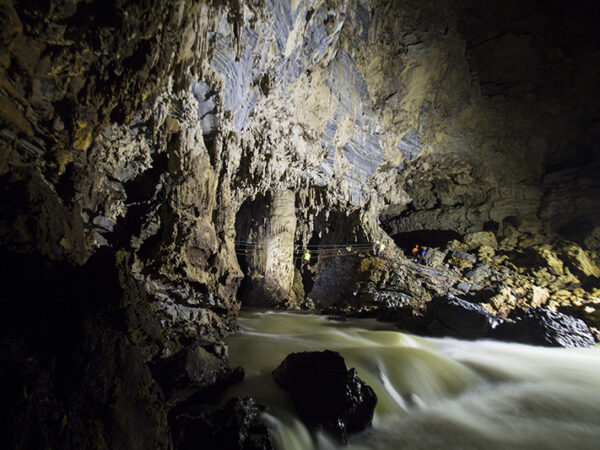 After crossing the river, the group will go through the first cave of this expedition called Secret Cave at 11 am. The journey within Secret Cave then proceeds forward with a trek to Hung Ton Cave entrance. The journey within Secret Cave and the following trek to Hung Ton will take from about 11:30 am – 12:00 pm. At the entrance of Hung Ton you will take a break and enjoy lunch until about 1:00 pm.
